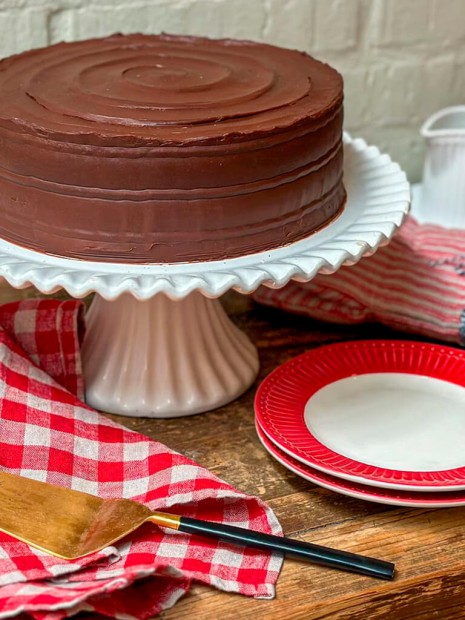 Por último cubrimos toda la tarta con el resto de la ganache de chocolate.
