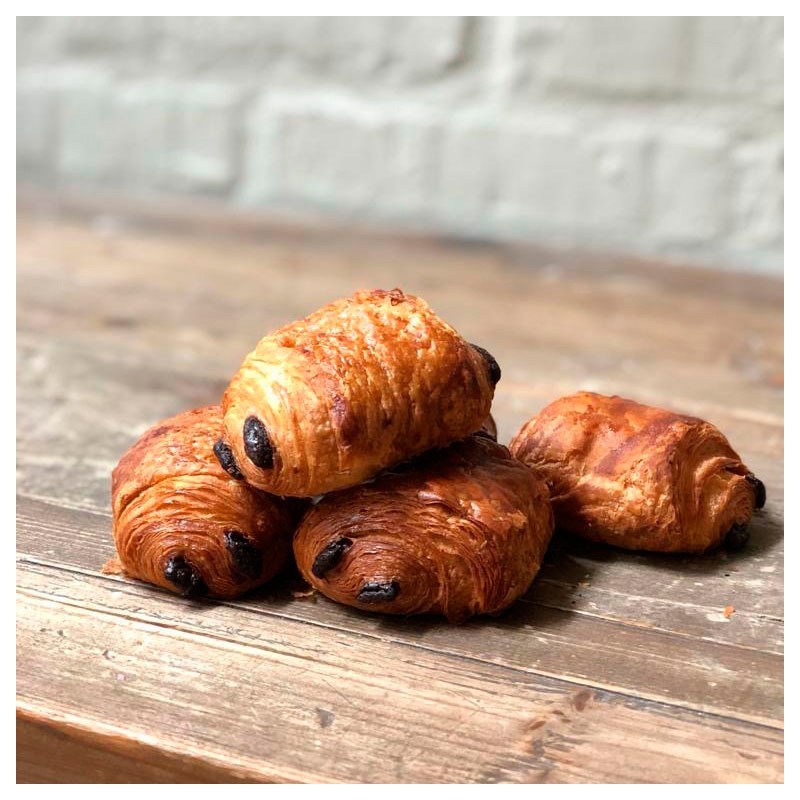 Deliciosa mini napolitana de chocolate de hojaldre, ideal para desayunos o meriendas. Precio por unidad. Disponible también en bandeja "Surtido minibollerías".