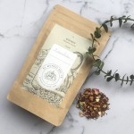 Rooibos Navideño Pandelino, infusión de rooibos natural, manzana, piel de naranja, astillas de canela, aroma natural de naranja, clavo, aroma natural de canela, pétalos de rosa y cardamomo. Estos ingredientes aportan un cálido gusto y aroma navideños.