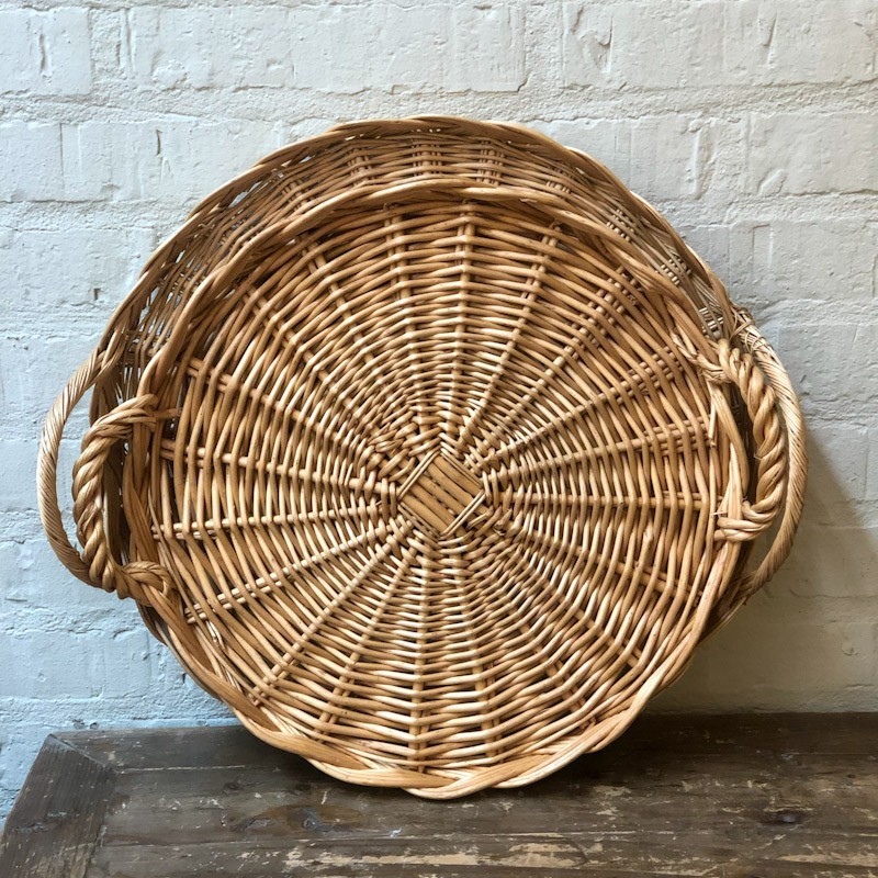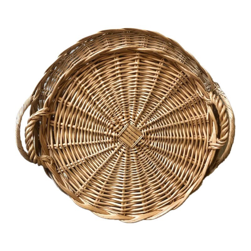 Esta Bandeja de mimbre redonda con asas es una base plana con borde elevado muy decorativa e ideal para presentar y regalar un desayuno, merienda o cesta gourmet Pandelino a domicilio. Dos tamaños a elegir.