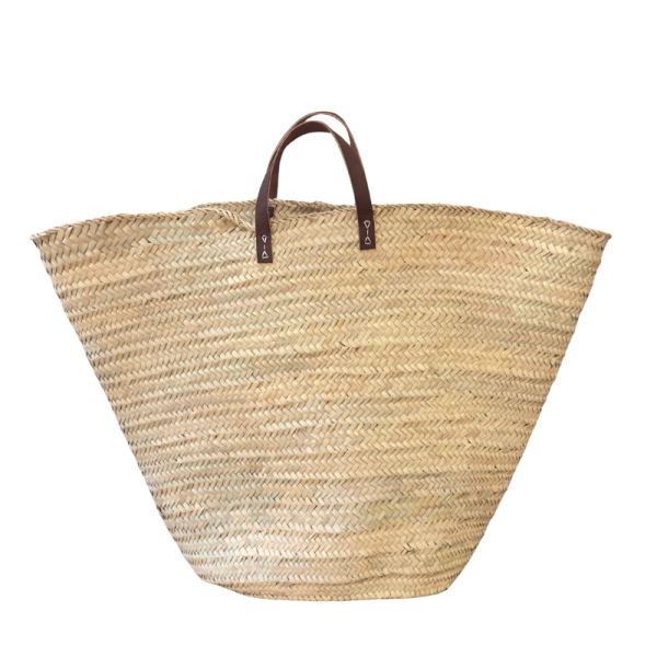Cesto de palma XL con asa de cuero