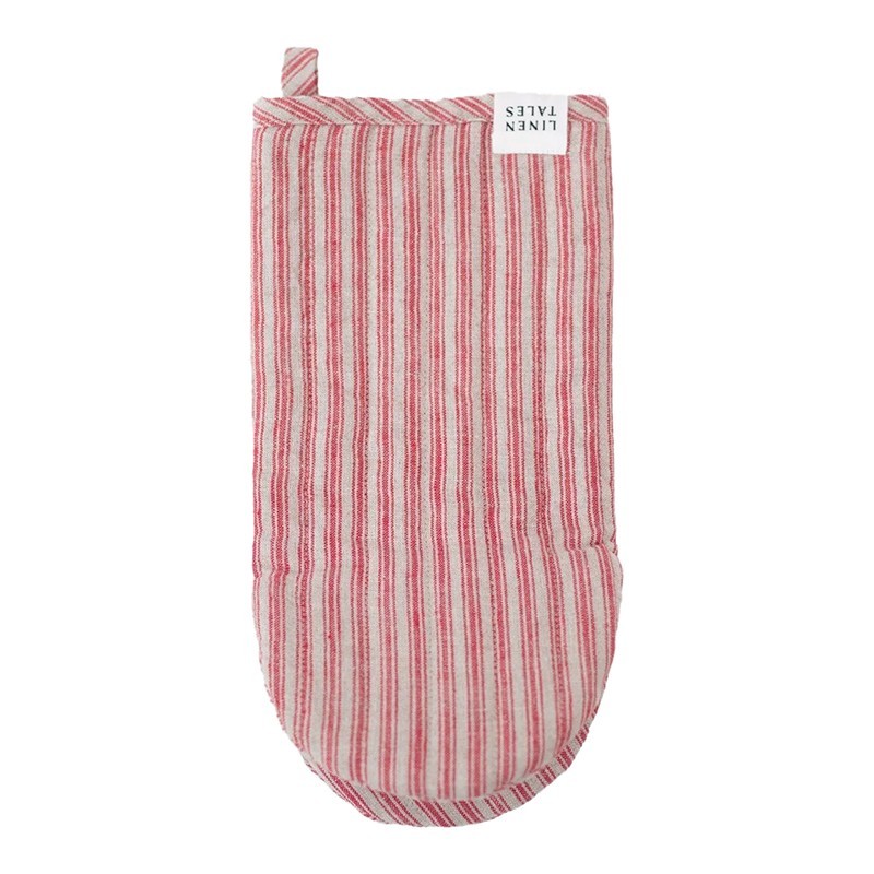 Manopla de horno de lino con rayas rojas y naturales