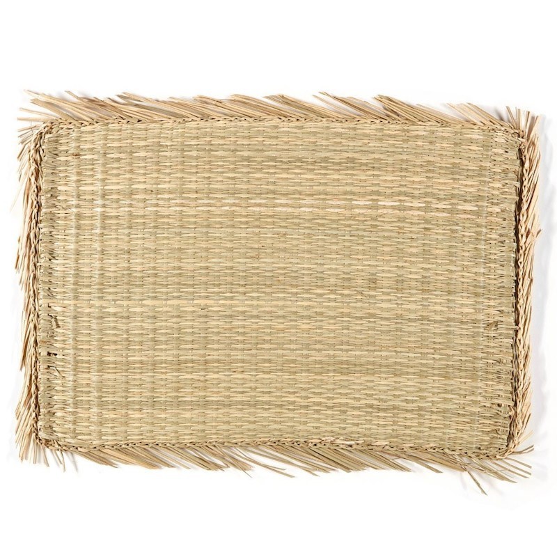 Mantel individual rectangular de alga marina con flecos, de material resistente, biodegradable y respetuoso con el medio ambiente. Ideal para mesas veraniegas.