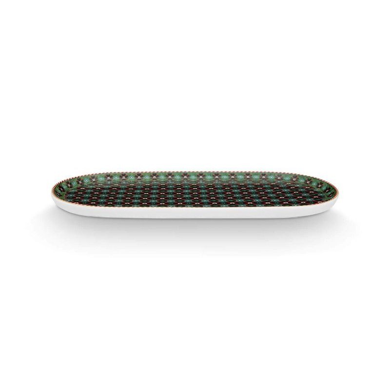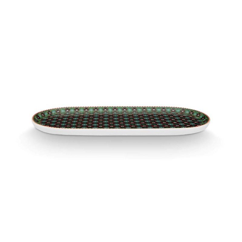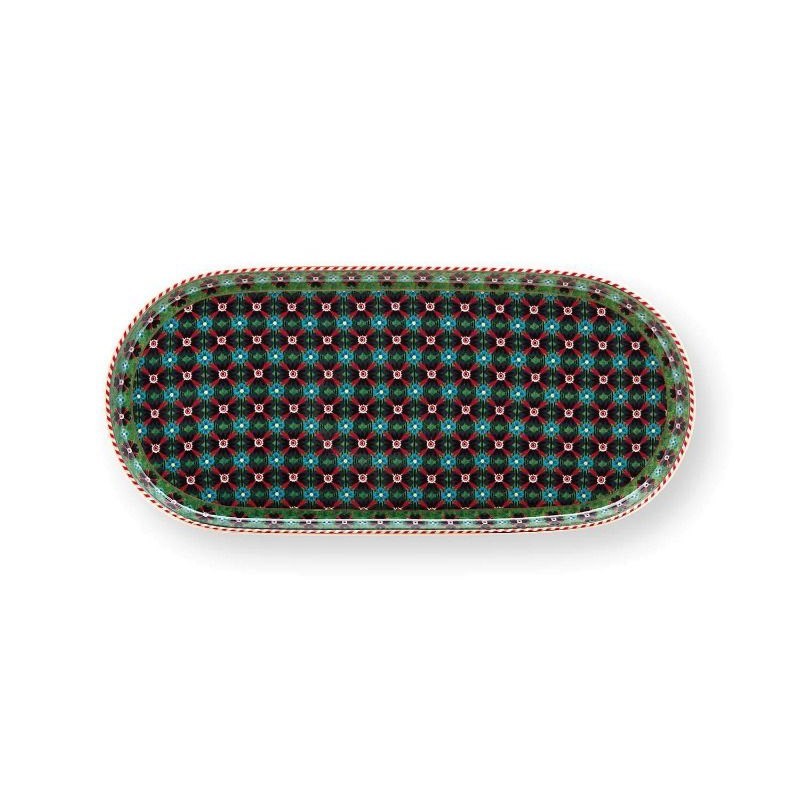 Esta Bandeja pequeña Clover Green es ideal para utilizar como base para la lechera y el azucarero. Está decorado con un patrón de azulejos en verde intenso con acentos rojos, que recuerdan a los clásicos cuadros invernales. Los bordes están acabados con detalles en dorado y una sorprendente franja roja y blanca, lo que le aporta al plato Sugar & Creamer Clover un aspecto extra cálido y acogedor.