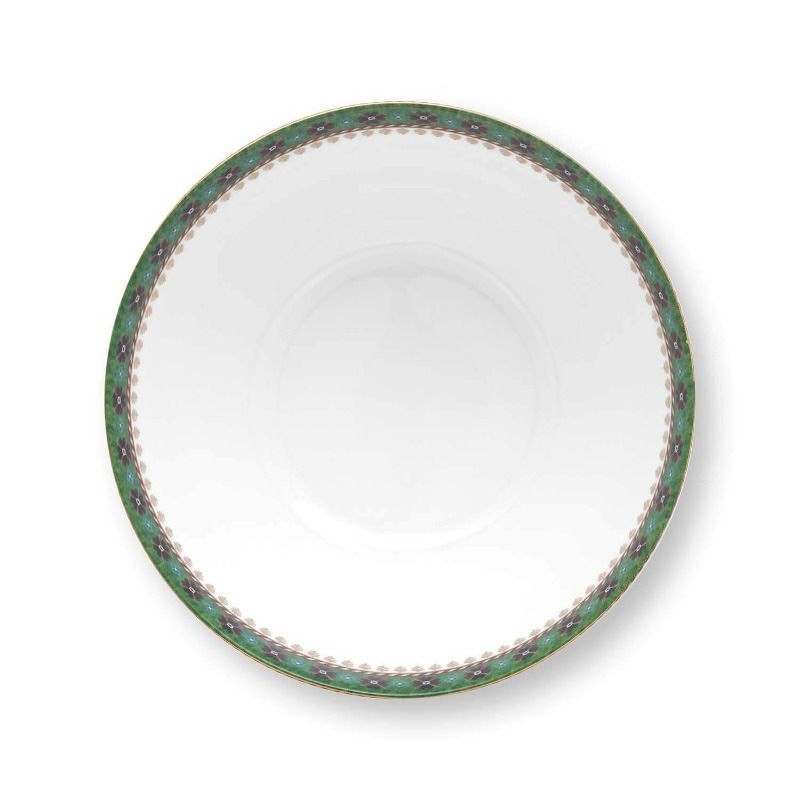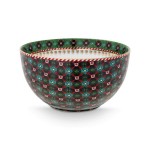 El Bowl Clover Green 12 cm está decorado con un patrón de azulejos en verde intenso con acentos rojos, que recuerdan a los clásicos cuadros invernales. Los bordes están acabados con detalles en dorado y una sorprendente franja roja y blanca, lo que le aporta al Bol Clover un aspecto extra acogedor y cálido.