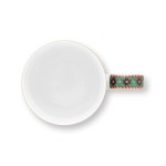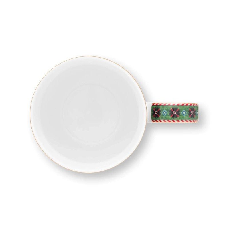 Taza Mug Berry Blues Blue de colores azul y verde oscuros que otorgan a la taza un aspecto muy cálido y elegante. Está decorada con un diseño floral azul oscuro con ramas de las que brotan flores y bayas de fantasía. Los bordes están acabados con detalles en dorado y una sorprendente franja roja y blanca.