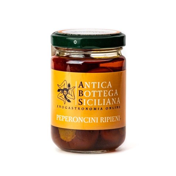 Pimientos rojos Sicilianos rellenos con atún, anchoas y alcaparras, un aperitivo clásico de la cocina siciliana que destaca por su sabor intenso y envolvente. Los pimientos tipo cereza se maceran en vinagre de vino blanco y se rellenan cuidadosamente con una mezcla de atún, tomates secos, anchoas y alcaparras, creando un bocado sabroso y equilibrado. Conservados en aceite, son perfectos para abrir el apetito o acompañar ensaladas y tablas de aperitivo.