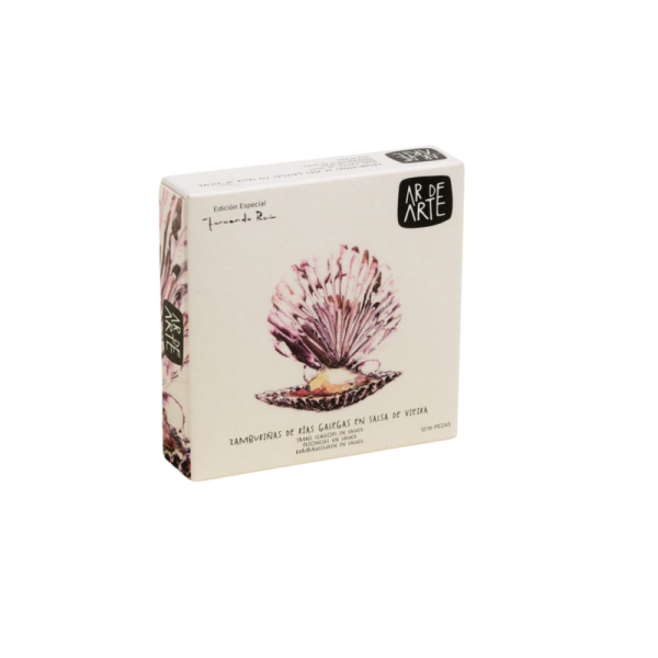 Descubre la excelencia de las rías gallegas con las Zamburiñas en salsa de vieira Ar de Arte, una selección artesanal de las mejores piezas (12/16 por conserva). Han reinventado la tradicional salsa de vieira utilizando únicamente ingredientes naturales y aceite de oliva, cocinados lenta y cuidadosamente para preservar sabor y textura. Cada conserva refleja la dedicación y el cuidado artesanal, logrando una experiencia gourmet única. Esta edición limitada destaca no solo por su calidad, sino también por su diseño exclusivo inspirado en la obra del reconocido artista gallego Fernando Rei, convirtiendo cada lata en un pequeño tesoro artístico. Perfectas para aperitivos, tapas o regalos gourmet, estas zamburiñas combinan tradición, sabor y arte en una presentación impecable.