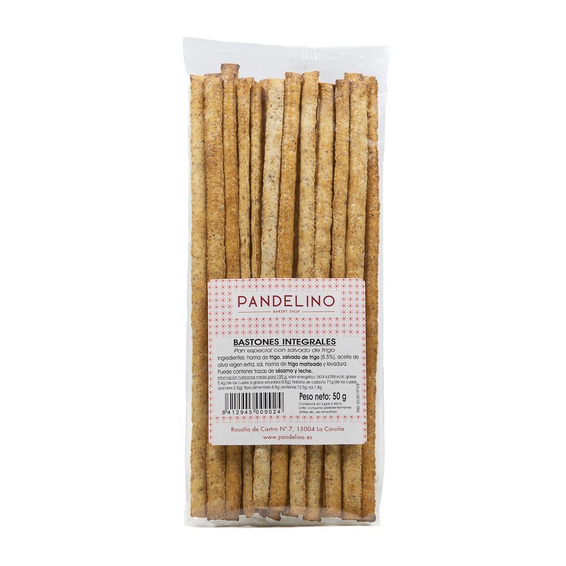 Deliciosos palitos integrales de harina de trigo para combinar con tus dips y aperitivos. 50 gr